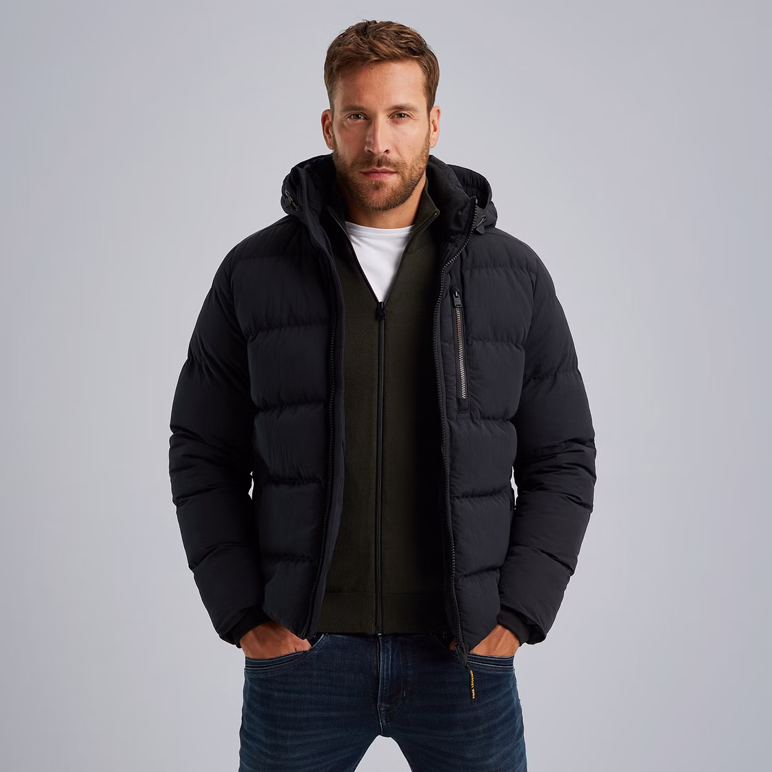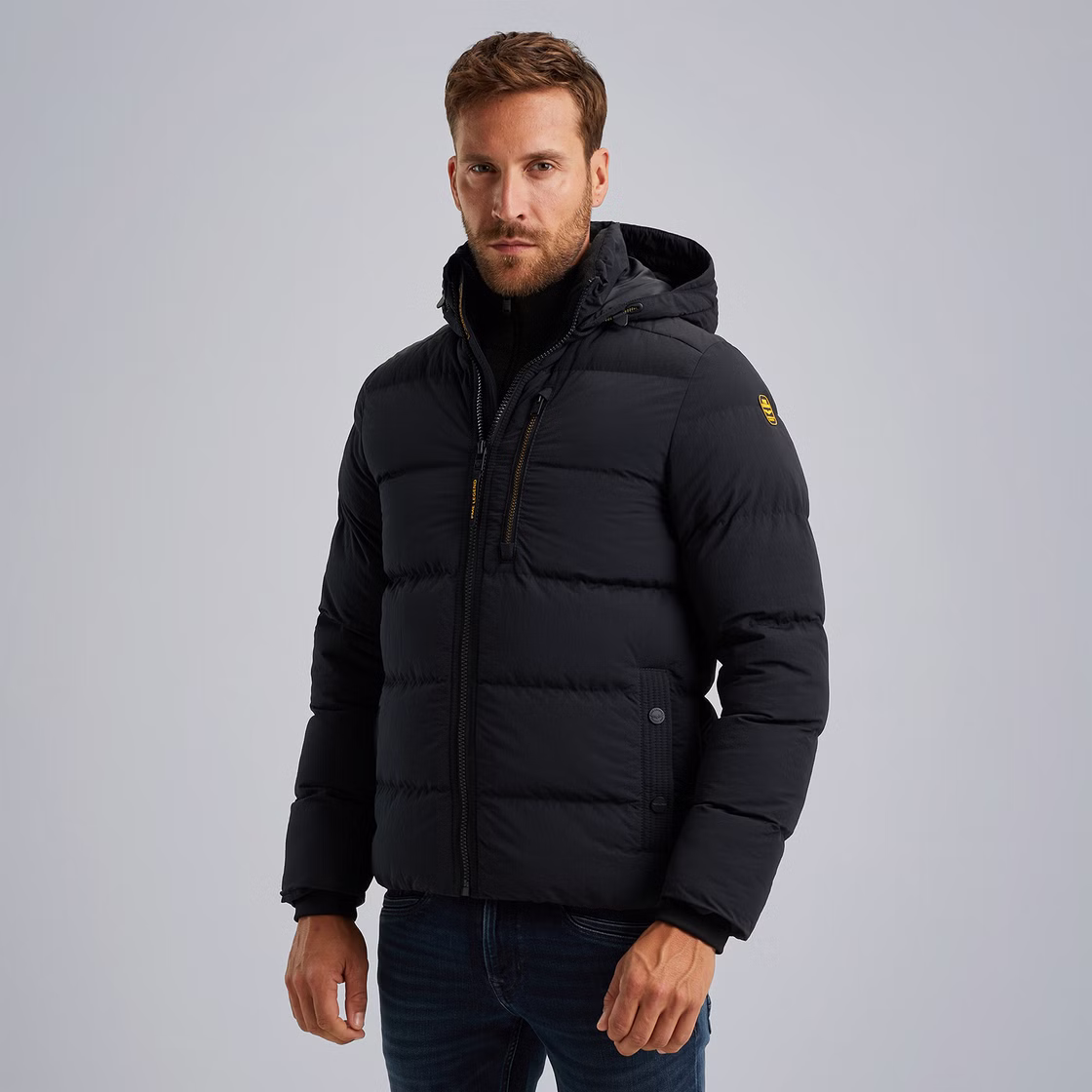 De PME Legend Brewster is een stoere pufferjas uitgevoerd in een rijk nylon crunch materiaal, wat hem bijzonder maakt. De afneembare capuchon biedt flexibiliteit en bescherming in alle weersomstandigheden, terwijl de elastische heupboord de kou buiten houdt. De Tech Down vulling zorgt voor veel draagcomfort. De waterafstotende jas heeft een borstzak met afneembare sleutelhanger en rits, twee zijzakken met drukknopen en fleece voering voor extra warmte en een binnenzak met rits voor veilige opslag.