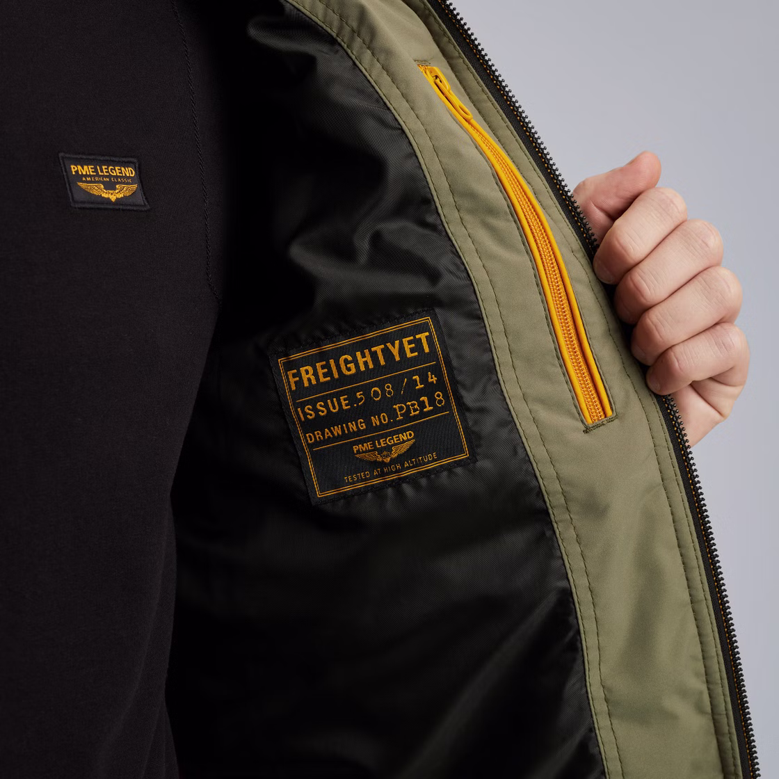De PME Legend Freightyet is een lichtgewicht, waterafstotende pufferjas. De comfort stretch en Tech Down vulling zorgen voor veel draagcomfort. De elastische heupboord en cuffs houden de kou buiten. De jas is voorzien van twee ruime zijzakken met fleece voering en een rits en een binnenzak met rits. De authentieke flight tapes op de schouders en bij de armsgaten zorgen voor de stoere PME Legend look.