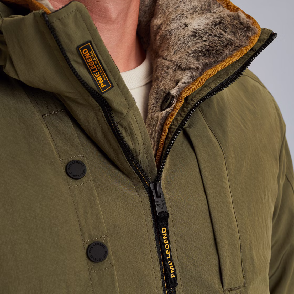 De PME Legend Snowpack is geïnspireerd op een authentieke 1965 field jacket. Hij is gemaakt van stevige ripstop met een moderne, gekreukte finish. Deze structuur is bewust aangebracht en geeft de jas een eigentijdse, technische uitstraling. De hoogwaardige stof is lichtgewicht, slijtvast en scheurbestendig, wat hem ideaal maakt voor dagelijks gebruik. De jas is wind- en waterdicht en heeft een uitneembare voering van imitatiebont, waardoor hij in meerdere seizoenen te dragen is. Verder is hij voorzien van geribde boorden en een afneembare, verstelbare capuchon, gevoerd met zacht imitatiebont. De twee zijzakken, een borstzak en een binnenzak bieden volop opbergruimte.